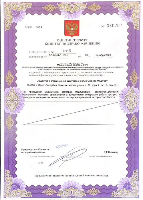 • Работаем по лицензии Минздрава РФ.